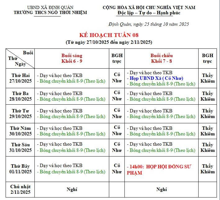 Từ ngày: 27/10/2025 - Đến ngày: 02/11/2025